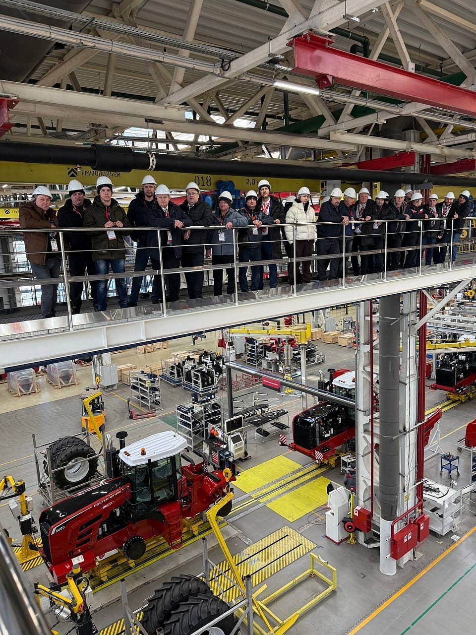 Тамбовские аграрии познакомились с историей компании, осмотрели логистические площадки и цеха. Помимо сельскохозяйственной техники они активно интересовались развитием дорожно-строительного направления. В данный момент на испытаниях находятся телескопический и фронтальный погрузчики, а также экскаватор-погрузчик; в разработке - гусеничный экскаватор.
