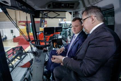 Корпоративный стенд Ростсельмаш посетили с официальной делегацией Юрий Слюсарь, губернатор Ростовской области; Вячеслав Василенко, заместитель Председателя Законодательного Собрания Ростовской области – председатель комитета по аграрной политике, природопользованию, земельным отношениям и делам казачества; Анна Касьяненко, министр сельского хозяйства и продовольствия Ростовской области. Премьеры техники гостям лично представил Валерий Мальцев, генеральный директор компании.